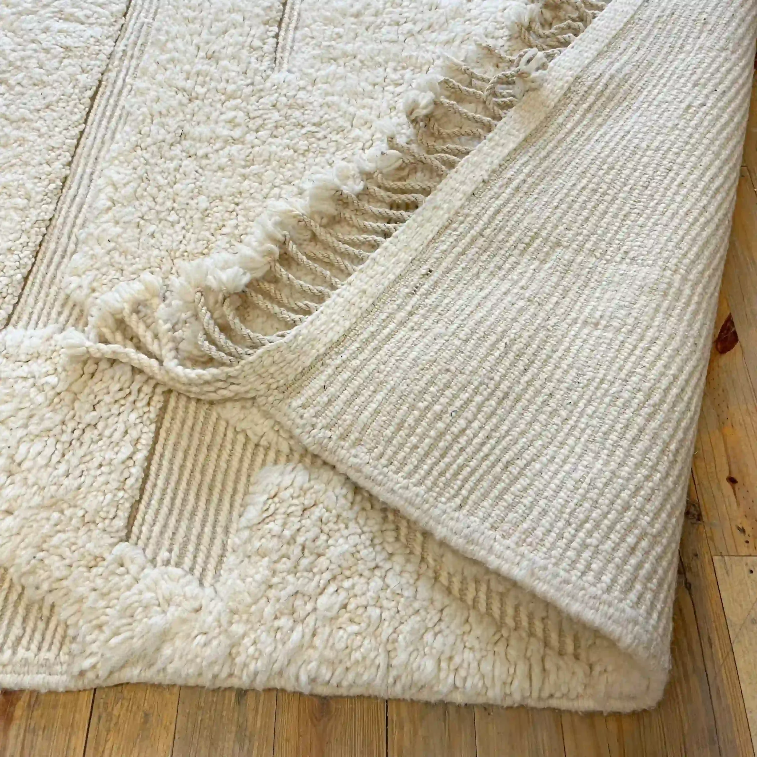 Brighten up your home decor with the exquisite craftsmanship of our Beni Ouarain Bright Light White Geometric Rug. Handwoven by skilled Moroccan artisans, this rug boasts intricate geometric designs in a luminous bright light white color, adding a touch of modern elegance to any space. Crafted from premium materials, it not only enhances the aesthetic appeal of your room but also provides luxurious comfort underfoot. Whether placed in the living room, bedroom, or office, this rug effortlessly complements a variety of interior styles while celebrating the rich heritage of Moroccan culture. Elevate your decor with the timeless allure of our Beni Ouarain Bright Light White Geometric Rug, a statement piece that radiates beauty and sophistication.